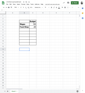 Then on another row you could add some money that you’ve spent. In this example we’ve spent 20 on food.